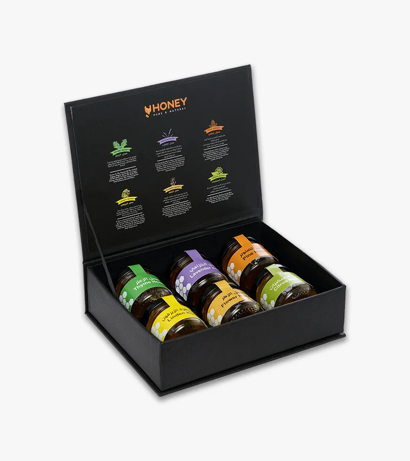 تشكيلة مكونة من 6 أصناف تجمع المزيج السحري لرحيق الزهور التركية لتستمتع بأجود أنواع العسل الطبيعي